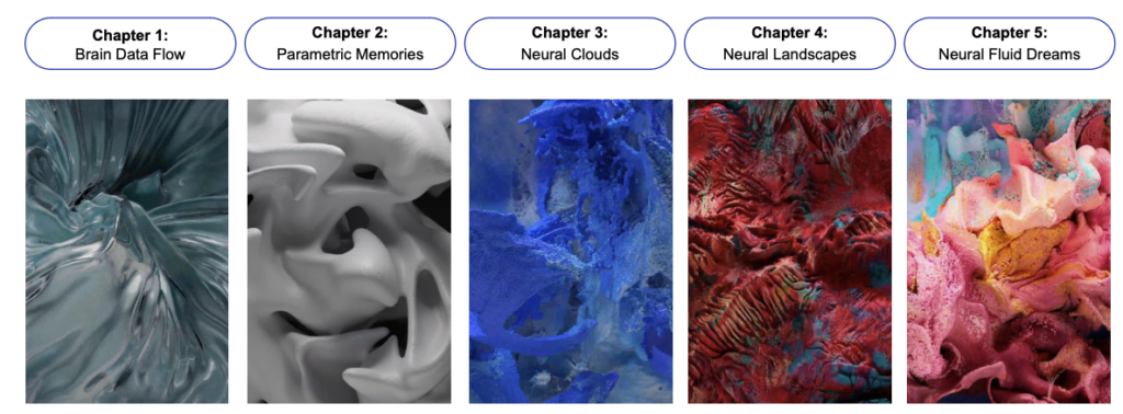 Each chapter not only represents a unique aspect of the human brain but also explores the impact of positive mental states on neurological processes. This offers a visual meditation on the interconnectedness of mind and body, providing viewers with an immersive experience that combines art, science, and technology in exploring the complexities of human emotions and healing.